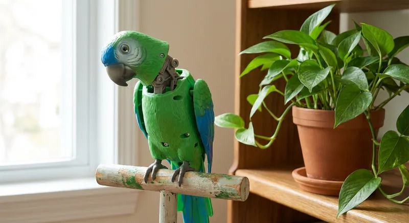Perfect Polly: A $15 Fake Bird on a Perch That Turns Its Head and Chirps, for People Who Want a Pet Bird Without the Bird