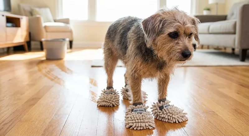 Mop pads strapped to your dog's paws, turning walks into janitorial shifts and your dog's dignity into a casualty of your cleaning schedule ⭐ Rating: 1/5 | Category: Pets | Tone:...